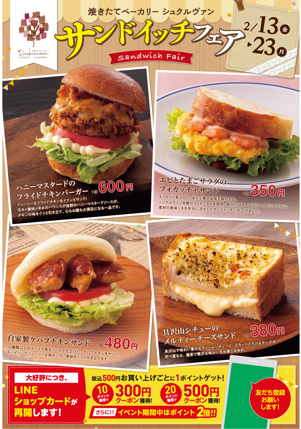 【2/13〜2/23】柳井店・下松店・宇部店で「サンドイッチフェア」開催
