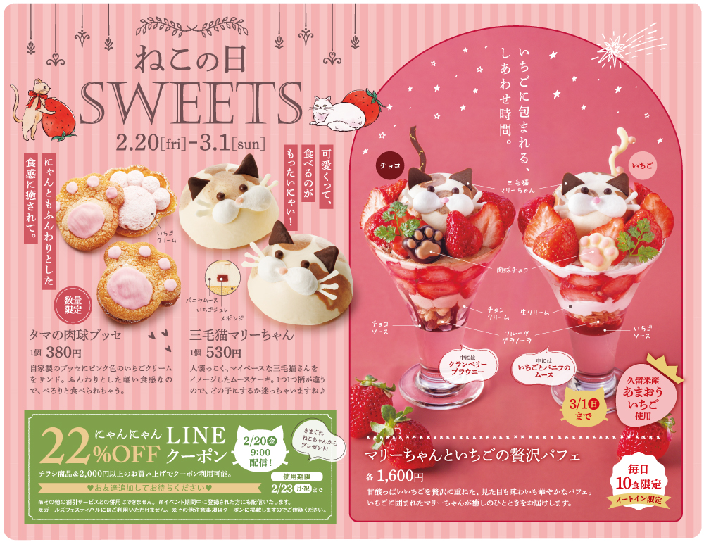 【2/20-3/31】久留米産極上あまおういちごFesta/ねこの日SWEETS