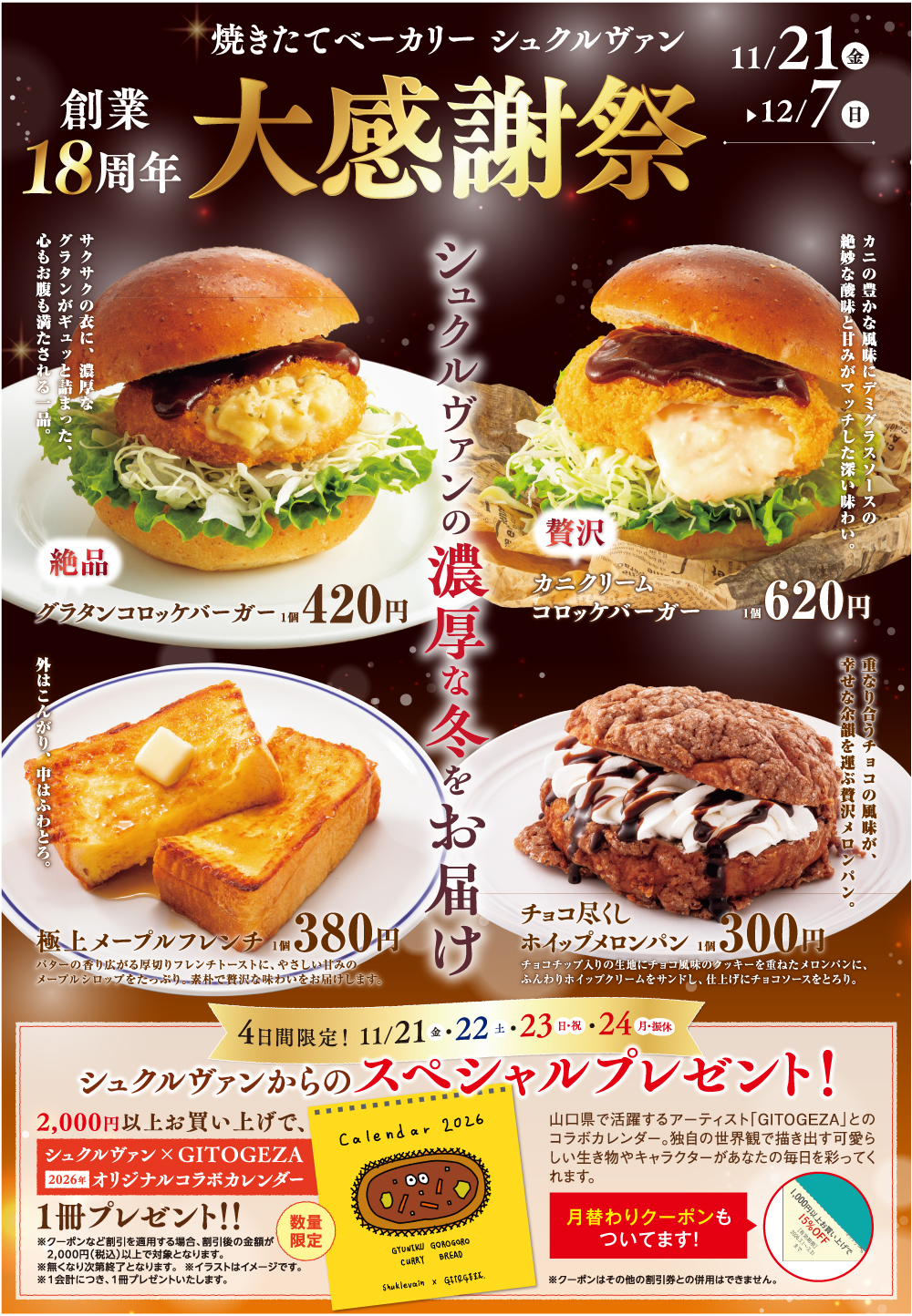 【11/21〜12/7】下松・防府・柳井・山口・宇部店で「創業18周年大感謝祭」開催