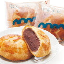 | 香ばしいパイで自家炊き餡をたっぷり包んだ、風味豊かな和風パイ。錦帯橋をモチーフにしたパッケージも魅力。 |